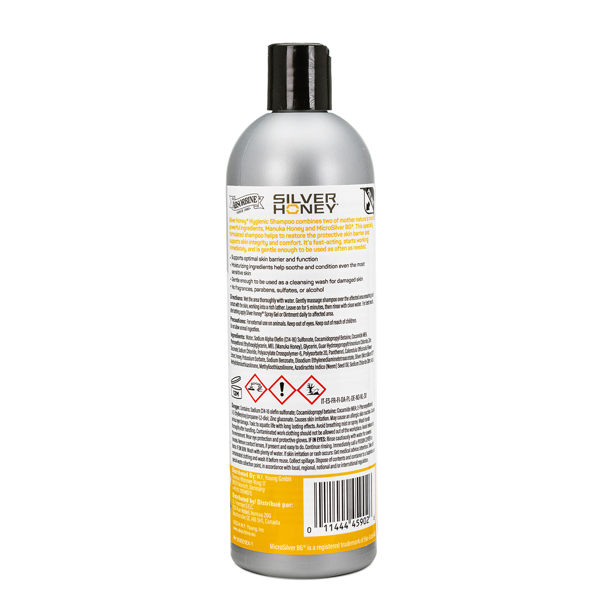 Silver Honey® Hygienic Shampoo combines two of mother nature’s most powerful ingredients, Manuka Honey and MicroSilver BG®. This specially formulated shampoo helps to restore the protective skin barrier and supports skin integrity and comfort. It’s fast-acting, starts working immediately, and is gentle enough to be used as often as needed. 473 mL Bottle.