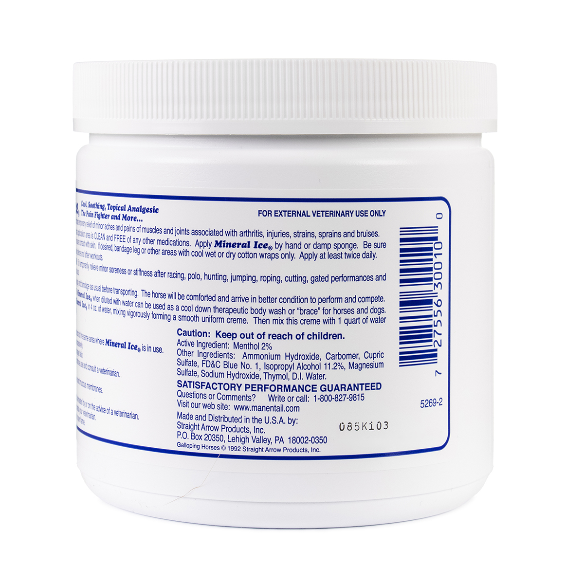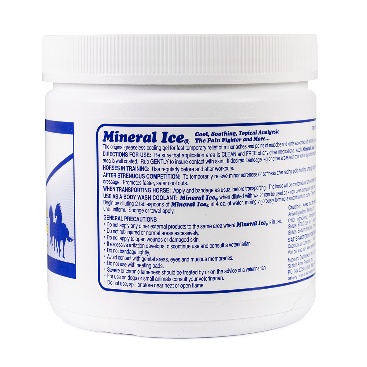 Mineral Ice, a time proven pain fighter that delivers performance in one word — RELIEF. Cool, fast, temporary relief of minor aches and pains. Reduces muscle and joint pain associated with arthritis, injuries, sprains, strains and bruises. Relieves minor soreness and stiffness from exercise and performing activities. All natural water based menthol formula contains no steroids or Benzocaine. Can be used as a therapeutic "cool down" body wash or brace.
